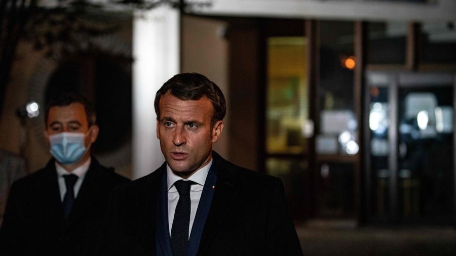 In video circulating on social media, mr macron, dressed in shirt sleeves, could be.